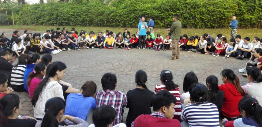 接下來的比賽項目是報數(shù),看似很簡單的事情,但過程總是因為某個人開小差、不用心等導(dǎo)致團(tuán)隊失敗,失敗團(tuán)隊的隊長承擔(dān)100%責(zé)任,俯臥撐從5個到10個到20個到40個再到80個,每一輪比賽輸?shù)膱F(tuán)隊隊長承擔(dān)的俯臥撐是上一輪的雙倍。比賽氛圍開始還很比較輕松,兩輪后大家開始緊張了,到第五輪時,受罰的隊長苦苦支撐著、一次又一次爬起、趴下、再爬起時,全體員工沉默了。隨后一名又一名員工趴下與隊長一起受罰,一起承擔(dān),最后其它團(tuán)隊的所有成員自愿自發(fā)全部圍繞在受罰隊長身邊一起受罰、承擔(dān),給受罰隊長支持、加油!