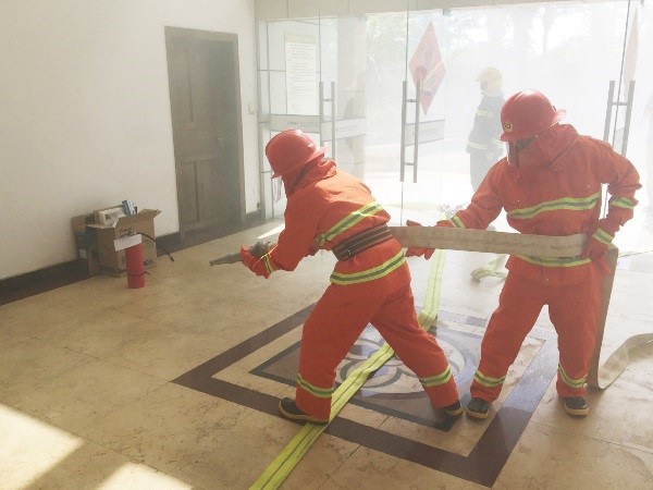 此次演練意在檢驗消防應(yīng)急組織機(jī)構(gòu)的運行狀況,滅火行動組對滅火器、室內(nèi)消火栓等消防器材的熟練掌握程度,