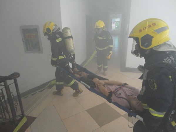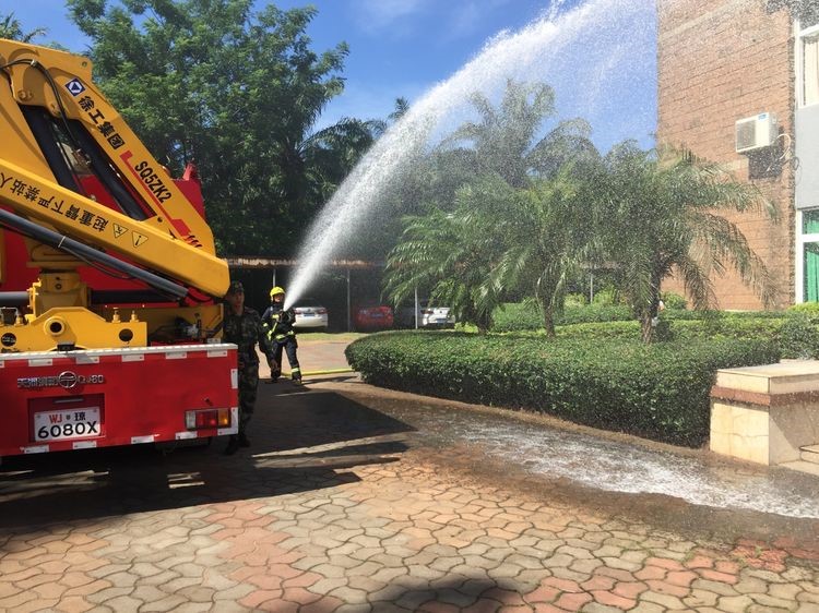 9點40分,金盤消防中隊2輛消防車和9名消防官兵抵達(dá)現(xiàn)場,迅速展開滅火和救援行動。在消防官兵的奮勇?lián)岆U下,火情迅速得到了控制,并被徹底撲滅,被困員工也被安全救出,演練就此結(jié)束。
