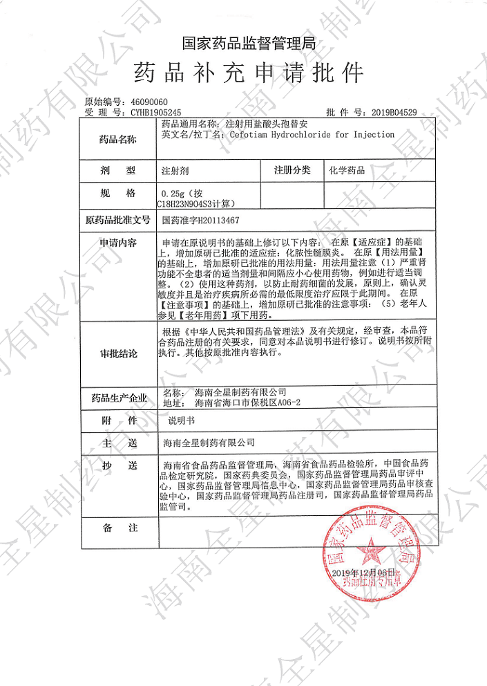 經(jīng)過公司研發(fā)團(tuán)隊(duì)長(zhǎng)期循證醫(yī)學(xué)研究,并結(jié)合上市原研藥品使用說明書,我公司向國(guó)家藥品監(jiān)督管理局提交的注射用奧美拉唑鈉、注射用鹽酸頭孢替安(4種規(guī)格)和注射用頭孢呋辛鈉(3種規(guī)格)適應(yīng)癥的補(bǔ)充申請(qǐng)近日獲得批準(zhǔn),新核準(zhǔn)的藥品使用說明書拓展了臨時(shí)用藥范圍,用法用量描述更詳細(xì)更為安全,提供了更加嚴(yán)謹(jǐn)?shù)挠盟幰罁?jù),有助于臨床醫(yī)生在一線工作中制定出更準(zhǔn)確、更有效、更有針對(duì)性的治療方案。今后,公司將繼續(xù)提高研發(fā)力量,加強(qiáng)技術(shù)生產(chǎn)工藝,嚴(yán)把質(zhì)量關(guān)口,為市場(chǎng)提供更多高品質(zhì)、高標(biāo)準(zhǔn)的優(yōu)質(zhì)產(chǎn)品,為2030年健康夢(mèng)中國(guó)夢(mèng)添磚加瓦,獻(xiàn)上我司的一份努力。
